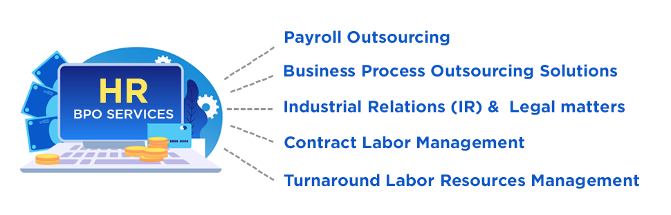 Our HR possesses vast experience and expertise in handling industrial relations matters. We ensure compliance with all legal and statutory requirements as third-party outsourcing services to our clients. Critical HRÂ BPO Services are: