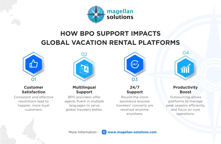 - Productivity Boost: Global vacation rental platforms inevitably become more productive through outsourcing. The providers of customer service BPO for the travel industry are ready to handle the surge in bookings and inquiries during the peak season. Thus, global vacation rental platforms will now have more time to do other core activities to sustain their operations.Â