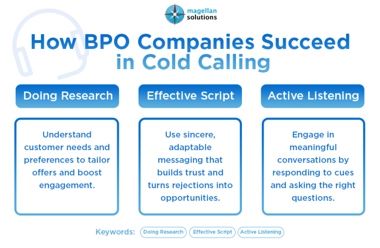 - Doing Research: BPO companies that achieve successful results in cold calling conduct extensive research on potential customers. Doing this ensures that BPO companies become fully aware of the needs and preferences of their potential customers. Conducting research enables BPO companies to prepare and make the most effective offers to their potential customers. BPO companies recognize that while creating a successful sale is challenging, it is not entirely impossible. Knowing the needs and preferences of potential customers empowers BPO companies to communicate effectively about the products and services they are selling.