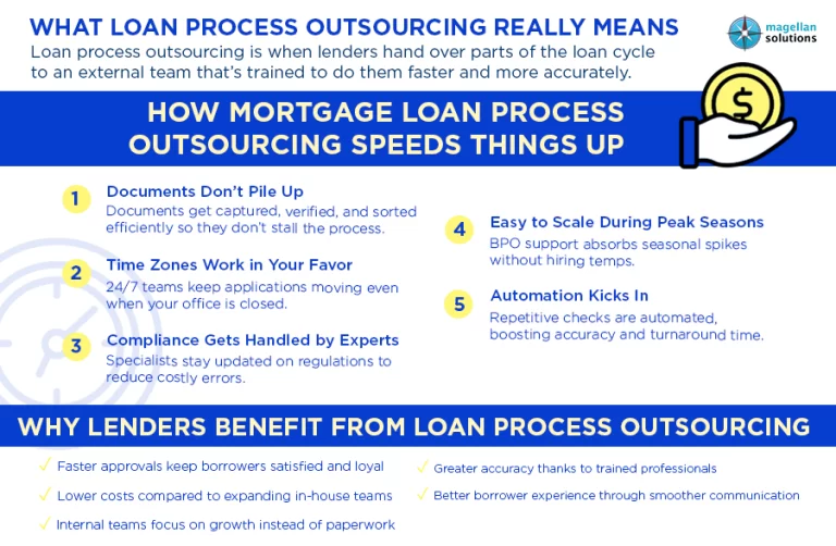 Borrowers don’t just want a loan—they want it quickly. Waiting weeks for approvals feels outdated in a world where most services are instant. But lenders know the reality: verifying documents, running compliance checks, and handling volumes of applications often slows everything down. That’s where mortgage loan process outsourcing comes in. By partnering with a specialized BPO, lenders can clear bottlenecks, shorten turnaround times, and give borrowers the faster, smoother experience they expect.