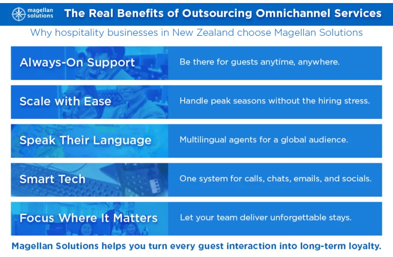 Outsourcing isn’t just for the big hotel chains with deep pockets. In fact, small and mid-sized accommodations in New Zealand often see the most dramatic impact. Outsourcing levels the playing field, giving them access to global-standard customer engagement without the overhead.