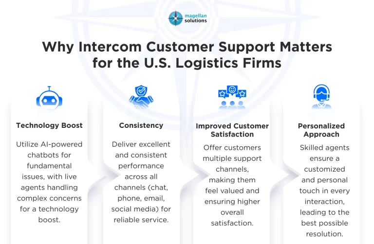 - Personalized Approach: Whether through chat, phone, email, or social media, Intercom customer support providers will ensure a customized approach. There are skilled, experienced agents who will do their best to address customer concerns with a personal touch. Thus, U.S. logistics firms can rest assured that all customer concerns will receive the best possible resolution, regardless of the channel used.