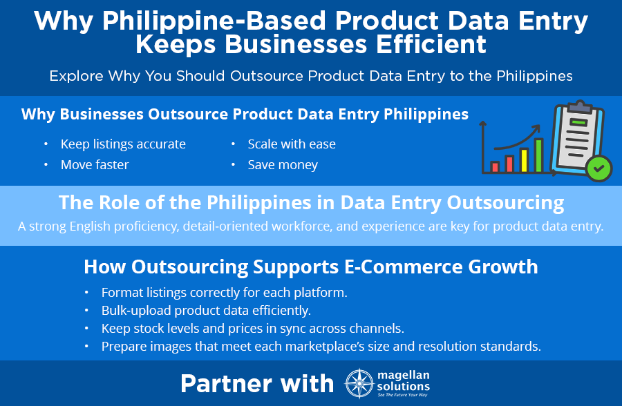 E-commerce is unforgiving when it comes to details. A single wrong price tag or outdated product description can mean lost revenue. Companies that outsource product data entry Philippines do so because it helps them: