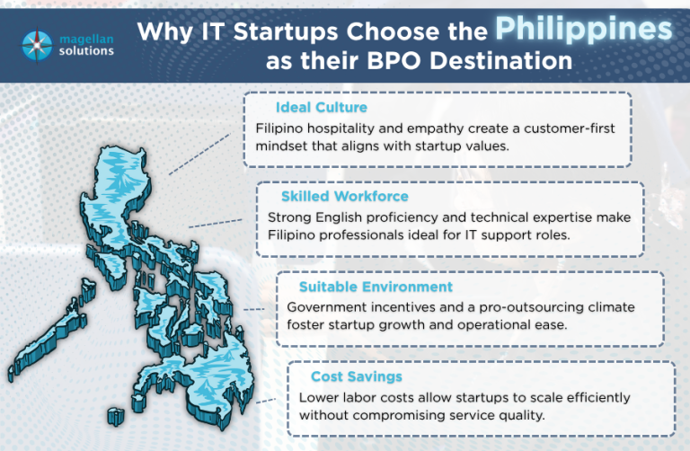 If IT startups want to have a chance to succeed, they must seriously consider outsourcing their operations. The Philippines is an ideal BPO destination for IT startups due to its favorable culture, skilled workforce, and suitable environment that generates cost savings. IT startups will indeed be productive and profitable once they choose the Philippines as their outsourcing partner. The Philippines offers numerous benefits that no other country can match for IT startups. The challenge now is for IT startups to determine which company in the Philippines deserves to be their outsourcing partner.Â