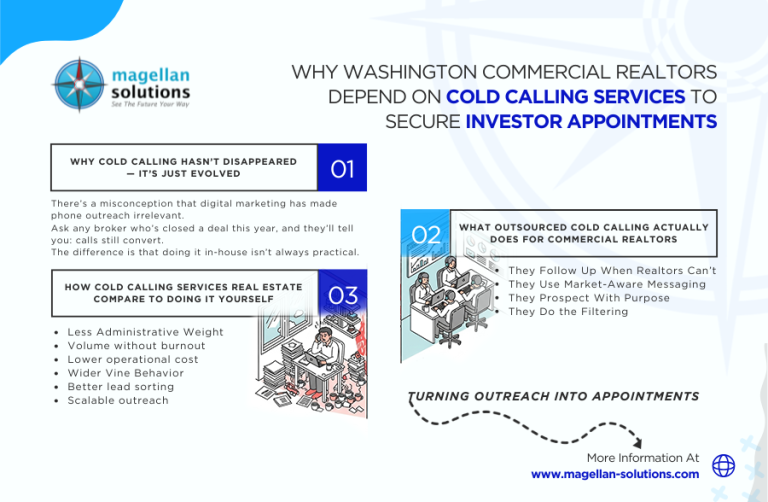 In Washington’s commercial real estate scene, everyone’s chasing the same thing: serious investors who are ready to talk numbers. With competition tightening and inboxes overflowing, many brokers are choosing to inquire outsourcing for cold calling instead of trying to handle the outreach grind themselves. It’s not about replacing relationships — it’s about getting in front of the right people faster.